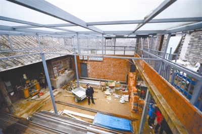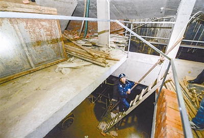 2015年11月19日,北京东城区纱络胡同一处违建被查,该违建地下室为三层,面积达700多平方米,最深处达10米。图为地下空间已经基本建成三层混凝土结构的地下室。