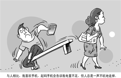 与人相比,我喜欢手机,起码手机会告诉我电量不足,但人总是一声不吭地走掉。 赵春青 画