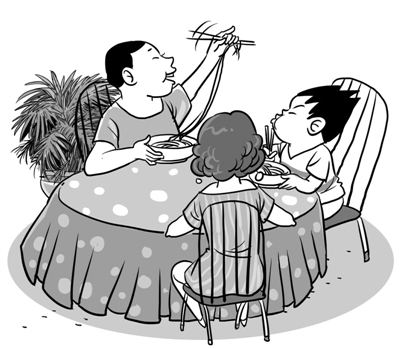 围桌食面 赵春青 绘