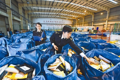 11月23日下午,浙江义乌海关工作人员正在跨境电子商务监管中心,对出口美国、俄罗斯等地的包裹进行分类查验。当日,义乌跨境出口包裹通关数量超过12万件。