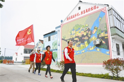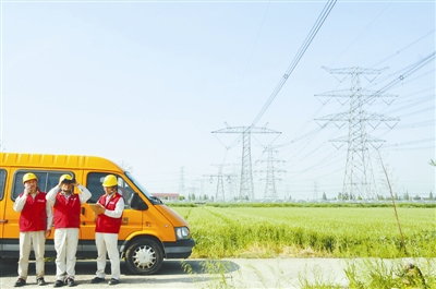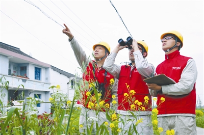 在松江泖港镇新建村,国网上海电力共产党员服务队迈着矫健的步伐,为建设美丽乡村提供优质、高效的供电服务