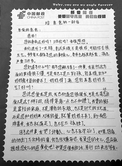 这是小霞无法当面对父亲说的心里话。母亲身患尿毒症,只能靠透析维持生命,远在新疆打工的父亲拼命赚钱为妻子治病、贴补家用,苦撑3年后终在疲惫不堪中希望通过离婚得到解脱,当小霞透过爷爷的只言片语了解到这一情况后,试图通过书信寄情挽留父亲。由于没有准确的邮编和地址,这封令见者潸然的信最终由班主任尹树彬通过微信转交给了小霞爸爸。