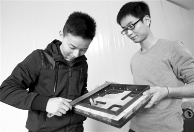 在广东务工的陈世强和唐江林两个90后小伙,敏锐地发现运用广泛、因利润率高被行业内部称为“小型印钞机”的吸塑包装制品,在家乡四川广安还是一个空白市场,于是他们于2015年4月返乡成立了世强塑料包装有限公司。预计今年产值将超过500万元,利润超过200万元。图为11月18日,陈世强(左)和唐江林(右)在检查刚生产的模具。