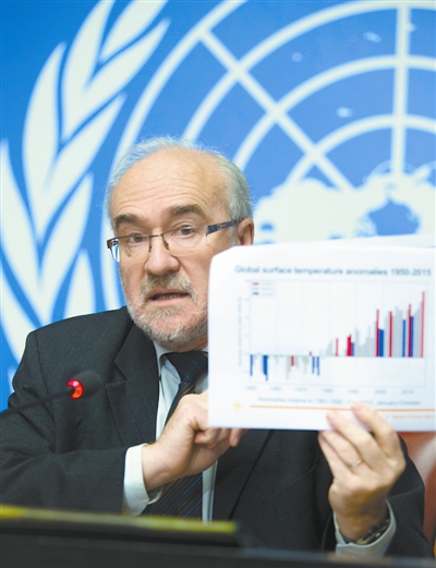 根据世界气象组织当日发布的最新报告,受强厄尔尼诺和人类活动引发的全球变暖影响,2015年全球平均地表温度可能创下自有气象记录以来的最高值,并触及比工业化前时代高1摄氏度这一警示阈值。世界气象组织当日发布2015年气候状况临时声明,并增发2011年至2015年五年期分析,意在为即将在巴黎举行的联合国气候变化大会提供谈判所需信息。