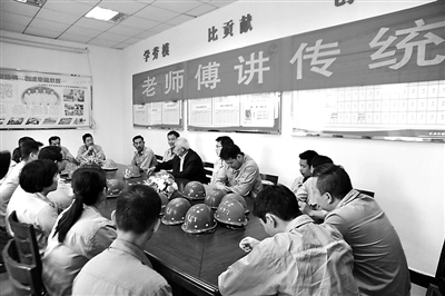 矿山面临“战危机、保生存”之时,大冶铁矿于10月20日到11月9日开展“老师傅讲传统”活动,邀请6名老师傅重回班组,重温他们艰苦奋斗的故事,凝聚人心,鼓舞士气。方国俊 摄