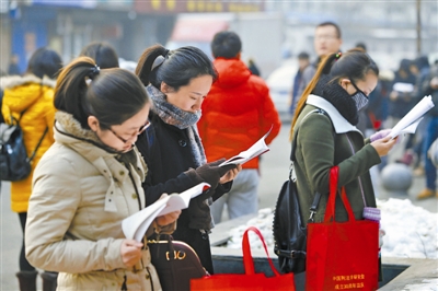 11月29日,考生在北京市实验职业学校考点外复习。