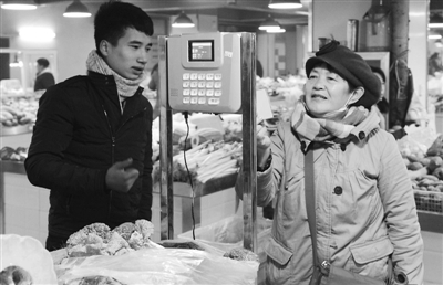 11月30日,郑州,改造升级后的郑州市首家标准化星级智慧农贸市场——经八路农贸市场开业,市民买菜也用上了电子智能化刷卡器。张涛/视觉中国