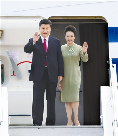 12月2日,国家主席习近平抵达南非首都比勒陀利亚,开始对南非进行国事访问。这是习近平和夫人彭丽媛向欢迎人群挥手致意。 新华社记者 庞兴雷 摄