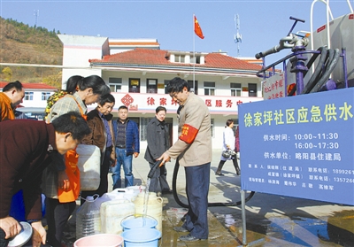 12月2日,陕西略阳县组织应急供水服务车,向徐家坪社区群众提供生活用水。