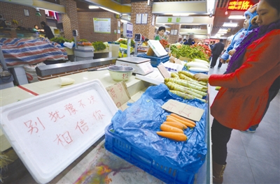 菜农郭友宝说,由于下午要赶回家照料菜地,为兼顾菜摊生意他就想出了上述良策。没想到,运作一个月来,竟从没遇到缺菜少钱的事,让他十分欣慰。