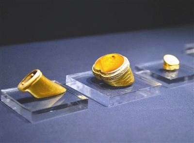 ②12月3日,江西省博物馆内展出的西汉海昏侯墓文物发掘新成果——马蹄金。