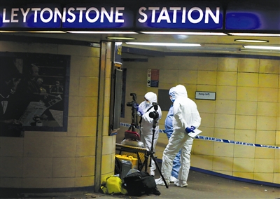 12月6日,警察在英国伦敦东部莱顿斯通地铁站的犯罪现场调查。英国伦敦警方5日在一地铁站抓获1名持刀行凶嫌疑人,警方宣布按“恐怖事件”处理这起袭击。 新华社/路透