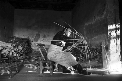 在安徽省泾县昌桥乡孤峰村有一家油布伞厂,由于传承传统制作技艺,产品受到国内外市场欢迎,油布伞已成为当地的一张名片。据该厂负责人郑国民介绍,孤峰油布伞制作分选材、量尺寸、刨竹节和分片、打孔、排竹、套伞头、伞骨与伞头相连、制伞面、上布、刷桐油、盖章或署名、晾晒等12道工序。新华社记者 刘军喜 摄