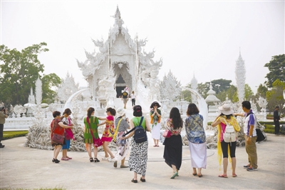 2015年2月3日,中国游客因如厕不文明行为而一度被泰国白庙拒绝入内。图为中国游客参观泰国白庙。视觉中国供图