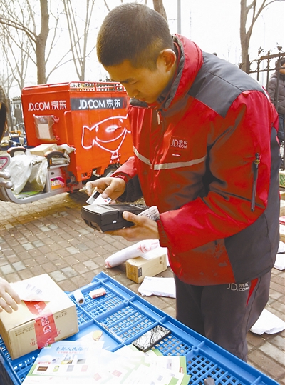送一件快递,无论大小,都是1元钱。他说最辛苦的时候,他一天搬送六七个几十斤重的快递到没有电梯的7楼。