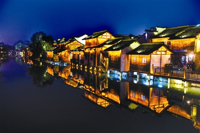 12月15日,乌镇西栅呈现美丽的夜色,静待大会开幕。