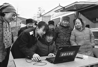 12月10日,西安铁路局开展“网络购票到村口”活动,将铁路服务延伸到田间地头。当日,流动火车站工作人员来到岐山县何家道村,帮助村民魏阿姨购买除夕前往北京的火车票,探望过年不能回家的儿子。