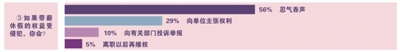 《职工带薪年休假条例》对企业违法责任作出了明确规定,劳动监察部门依法对用人单位执行条例情况进行监督。然而,本次调查发现,面对带薪休假权益受损,逾六成的受访者在职时不敢维权。其中,56%的受访者选择“忍气吞声”,5%选择“离职以后再维权”;会向单位主张权利的仅占比29%,而向有关部门投诉举报的占比最少,为10%。