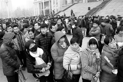 12月22日,山东博兴市民在博兴县人力资源和社会保障局外排队等待补缴社保。根据山东省人社厅2015年7月1日实施的鲁人社〔2015〕29号文件,截至2014年12月30日,户籍为博兴的市民,男性满45周岁、女性满40周岁,凭工作经历可到县人力资源和社会保障局补缴养老保险。消息一出,每天都有众多市民补缴费用。