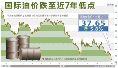 ① 12月7日,国际油价跌至近7年低点。 新华社记者 卢哲 编制