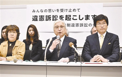 ⑦ 12月21日,日本法律界团体“安保法制违宪诉讼会”在国会内召开记者会,宣布将针对《安全保障相关法》提起大规模违宪诉讼。(共同社) 东方IC供图
