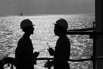 ↓在采油中,平台上实施了科学严格的海上环保制度。