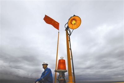我国“海洋石油981”钻井平台上的现场总指挥曲海龙站在甲板上迎着海风眺望远方。