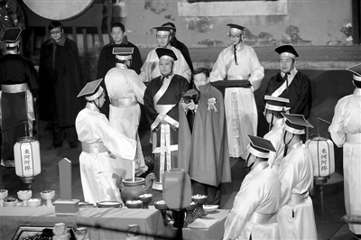 12月21日,在山东聊城的东阿老城里,上演了一场非物质文化遗产的仪式活动,“冬至子时取水炼阿胶”已经在三千年历史长河中固化为一种文化传统。尽管现在的阿胶制作技艺已进步到使用小分子生物制药技术时代,但冬至子时取水的仪式,还是能够提醒人们,蕴含在东阿阿胶这一中药品类中的深厚中华文化内涵,其实是中国古代对于人体养生和大自然的内在哲学联系,用这种传统仪式来展示蕴含在这一古老中药中的中医药阴阳五行养生文化,客观上可以唤醒沉睡在当代人记忆深处的民族自豪。图为东阿阿胶的董事长秦玉峰(图中无帽者)的主持带领下,进行了冬至子时取水的祭祀环节。 胡雪柏 摄