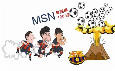 北京时间12月31日凌晨,卫冕冠军巴塞罗那4比0大胜升班马皇家贝蒂斯,继续领跑西甲。巴萨攻击线梅西和内马尔以及苏亚雷斯的“MSN”组合本年度共打进180球,创下西甲球队年度进球新的历史纪录。视觉中国 供图