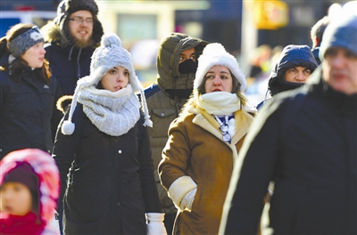 1月5日,人们身着冬衣走在美国纽约时报广场。当日,纽约迎来入冬以来最冷的一天,全天最低气温降至零下8摄氏度,与刚刚过去的温暖的圣诞新年假期形成鲜明反差。新华社记者 王雷 摄