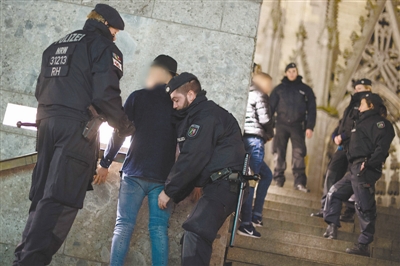 当地时间1月5日,德国科隆,德国警方在科隆中心地铁站抓捕嫌疑犯。东方IC供图