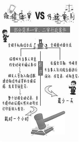 “我院行政诉讼案件成倍增长,审判力量无法及时补充到位,案多人少的现象非常严重。以前光开庭、判卷、提交证据材料,就要给当事人打十几通电话,相当繁琐,大量的时间都用在证据交换、庭审询问等环节。现在通过微信办案群工作,审判效率大大提高了。”微信庭审主审法官魏丽平说。