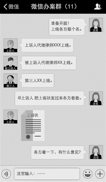 虽然看起来是在“聊天”,但每一次发言都带着法律印迹。当事人只要同意以微信的方式进行诉讼活动,所有发言视同传统庭审模式一样,具有同等法律效力。