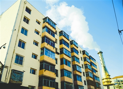 1月10日,辽宁省沈阳市商业区的一处刚刚改造完成的锅炉房,煤改气后,高大的钢铁烟囱里冒出白烟。