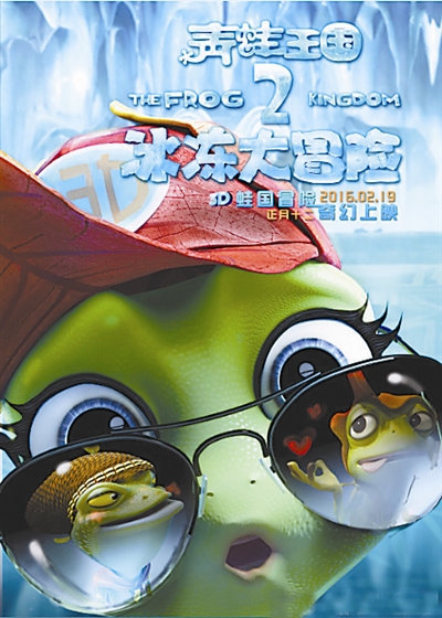 由吉林禹硕影视传媒股份有限公司出品的原创3D动画大电影《青蛙王国之冰冻大冒险》(简称《青蛙王国2》)将于2月19日(农历正月十二)全国上映。该片延续了第一部的创作风格,讲述青蛙们在冰川冒险的故事。 (娜仁)