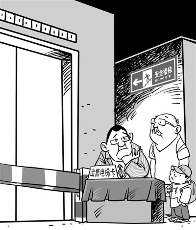 据《大河报》报道,近日,河南商丘市一小区物业给电梯安装了刷卡系统,业主需交10元办卡才能使用,且持卡业主只能刷卡到自己所在的楼层。物业部门称,此举是为了防盗。但有部分业主则提出了质疑,有业主不愿办理电梯卡,每天爬楼梯回家。