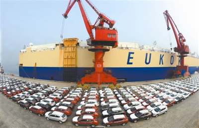 当日,由安徽江淮汽车股份有限公司生产的350台汽车在江苏连云港码头装船出口巴西。据连云港口集团消息,近年从连云港出口的汽车数量呈现持续增长的良好态势,2015年全年该港出口汽车13000余辆。