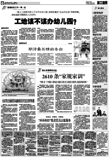 凡此议论之声出来后,项目部党工委意识到,如果不能加以正确引导,那些不同的声音,会给工地幼儿园的兴办带来不健康影响。