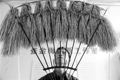张金海发明的环卫工专用扫把由伸缩把柄、伸展扫把头和防灰尘飞扬系统组成。保洁工在道路清扫保洁作业时,可调节多功能组合杆的长度和大扫把头的宽度,打开防尘罩,轻便、省力,有利健康。