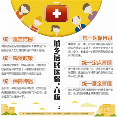 党的十八届三中全会提出,整合城乡居民基本养老保险制度、基本医疗保险制度。日前,国务院出台的《关于整合城乡居民基本医疗保险制度的意见》(以下简称《意见》),提出覆盖范围、筹资政策、保障待遇、医保目录、定点管理、基金管理的六统一。