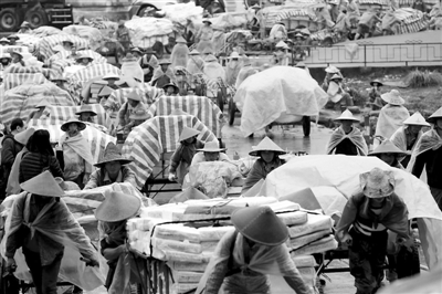 广西防城港市的里火口岸是经国家批准开放的重要边境民众互市贸易口岸,近年来,随着配套设施的不断完善,里火口岸贸易发展迅猛,互市贸易额、货运量逐年攀升,2015年里火边民互市全年完成互市贸易额45亿元人民币。据统计,目前在里火每日从事互市贸易的边民约有3000人次,平均每人每日收入150多元,互市贸易较好地解决了边境民众的就业、收入、生活和居住问题。新华社记者 李明放 摄