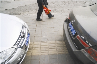 北京六道口地铁站附近,机动车随意占用人行道。