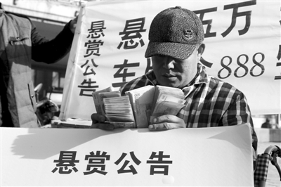 1月19日,河南郑州,农民工街头悬赏5万元追查肇事逃逸宝马车。