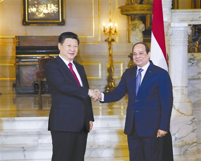 习近平指出,中方高度重视发展同埃及的关系,支持埃及恢复稳定、实现发展,支持埃及人民自主探索符合本国国情的发展道路。我这次访问期间,中埃双方将共同发表关于加强全面战略伙伴关系的五年实施纲要,全面规划中埃各领域合作。双方要发挥高层互访的引领作用,对彼此核心利益给予坚定支持,不断充实战略内涵。双方要将各自发展战略和愿景对接,利用基础设施建设和产能合作两大抓手,将埃及打造成“一带一路”沿线支点国家。中方愿参与埃及苏伊士运河走廊、新行政首都等大项目建设,愿同埃方扩大在贸易、融资、航天、能源、人力资源开发、安全等领域合作。双方要加强在联合国事务中的协调配合,在中东、气候变化等国际和地区问题上保持沟通,维护我们两国及广大发展中国家共同利益。中方愿意同埃方加强人文合作,密切文化、教育、旅游交流,增进两国人民友好交往。