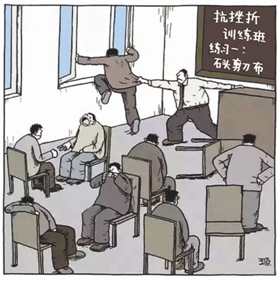 漫画家王原先生的作品《抗挫折训练》,乍看令人忍俊不禁,甚至让人觉得荒诞,然而作品反映和揭示的问题足以引发读者对生活重新审视和思考。