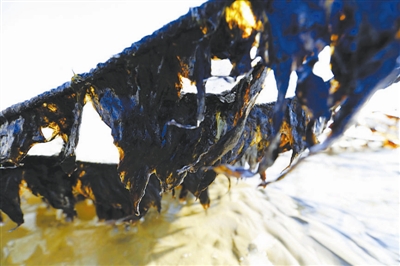 1月24日在我国紫菜主产区江苏连云港市海州湾沿海拍摄的被海冰覆盖的紫菜。