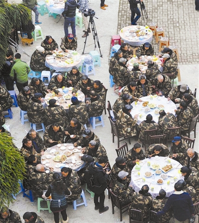 重庆市民请“棒棒”吃坝坝宴团年