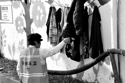 河南现“友善之墙” 多余衣物挂墙头供人用