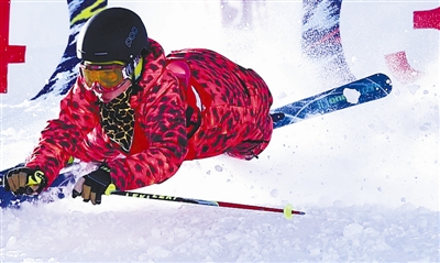 1月27日,在全国第十三届冬运会自由式滑雪雪上技巧女子个人的比赛中,来自长春的王欣两次在赛道上摔倒,随即爬起来继续比赛,虽然没有取得好成绩,但赢得观众的赞赏。图为王欣摔倒瞬间。