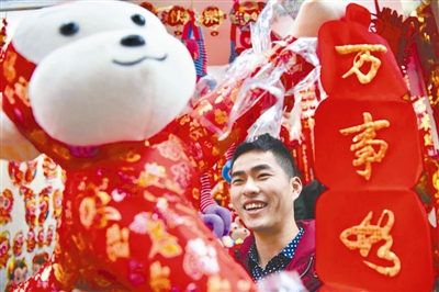 1月28日,消费者在安徽合肥市城隍庙小商品市场购买猴年饰品。近日,合肥各小商品市场以“猴”为主题的年节饰品销售火爆。人们购买喜庆的猴年饰品,迎接新春佳节的到来。 新华社发(杨晓原 摄)